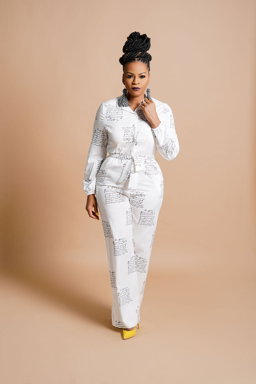 White Jumpsuit with Black Lettering